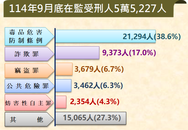 發布114年9月法務統計摘要,內容包括114年8月份最新統計資料及專題分析「非本國籍受刑人統計分析」。